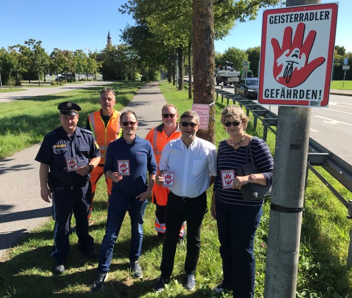 „Geisterradler gefährden“ – nicht nur andere, sondern in erster Linie sich selbst. Deshalb appellieren Kreisverkehrswacht, Polizei und städtische Straßenverkehrsaufsicht an alle Radfahrer, sich mehr an die Regeln des Straßenverkehrs zu halten und eben nicht als Geisterradler in der falschen Richtung zu fahren. „Immer mehr Fahrradfahrer kommen bei Unfällen zu Schaden“, berichtet Elmar Hartl, Leiter der Abteilung Verkehr und Mobilität der Stadtverwaltung. Deshalb ist er sehr froh über 20 neue Hinweisschilder für Geisterradler, die die Kreisverkehrswacht für die Sicherheit der Radler finanziert hat.